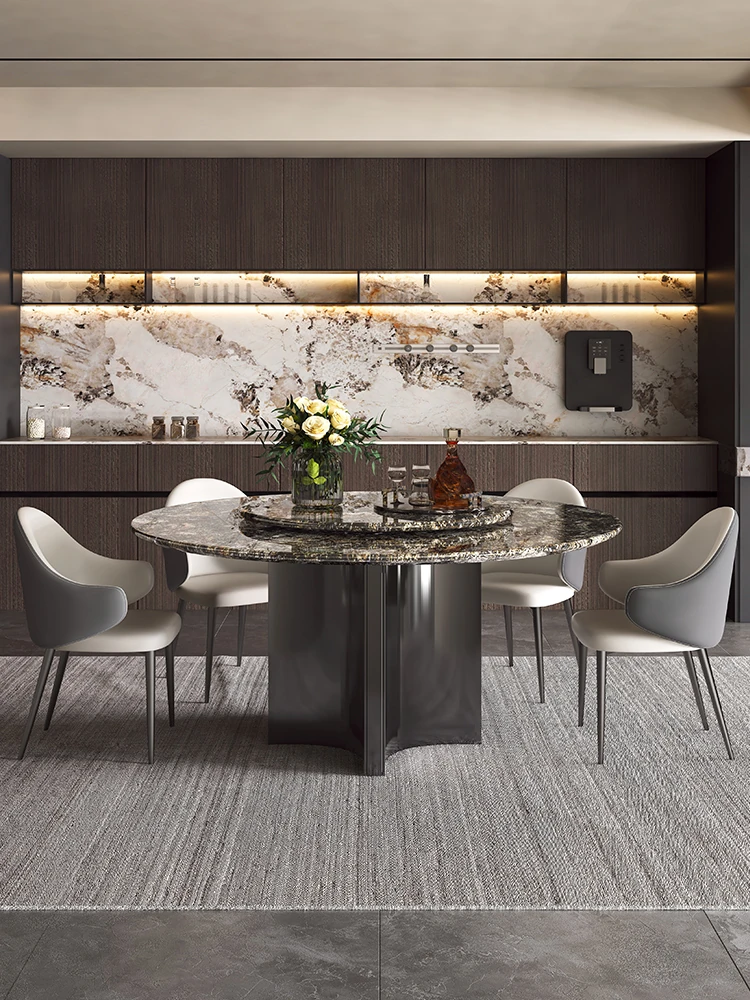 オレオグレー大理石ラウンドダイニングテーブル - 高級感溢れる軽奢スタイルのイタリアンミニマリズム新作テーブル&チェアセットで、別荘に最適!