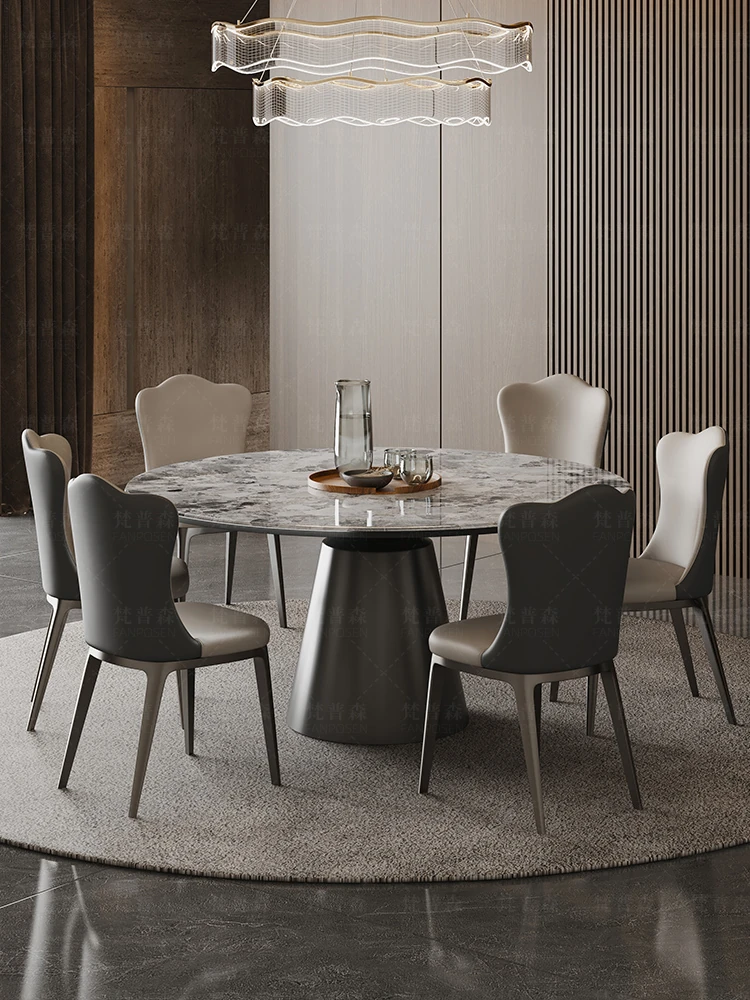 ヴァンプソン天然大理石ダイニングテーブルセット 2025年新作!ラグジュアリーな雰囲気を演出する円形テーブルと高級感あふれる微晶石素材。おしゃれな食卓を実現する高端ダイニングテーブル!