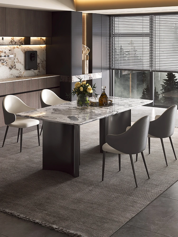イタリアンミニマリズムの軽やかなラグジュアリー感、天然オリオグレー大理石の長方形ダイニングテーブル&チェアセットで、洗練された空間を演出!高級感あふれるデザインで、心地よい食事のひとときをお楽しみください。