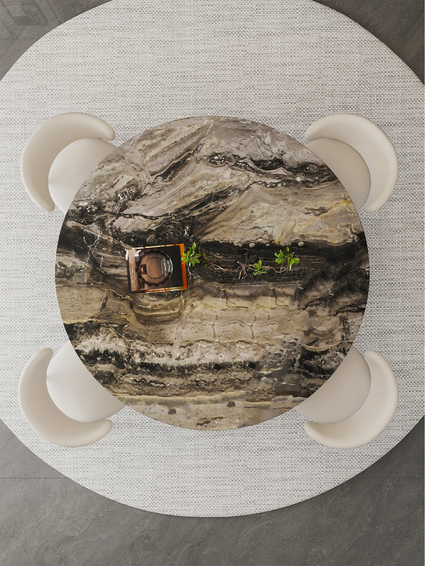 ヴァンプソン輸入ヴェネツィアブラウンラグジュアリーストーンダイニングテーブル - 天然大理石の高級感あふれるイタリアンラグジュアリー円形テーブルで、特別な食事のひとときを演出します。