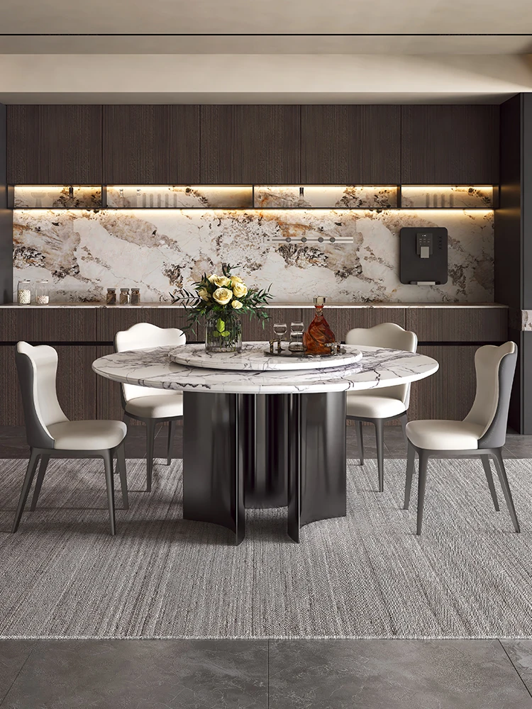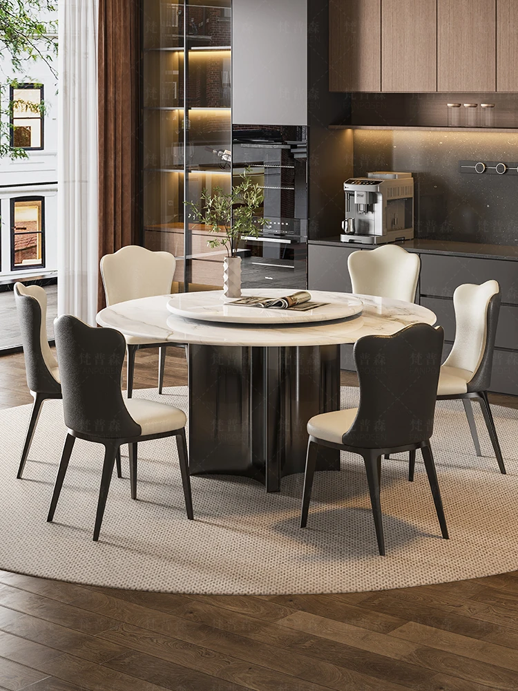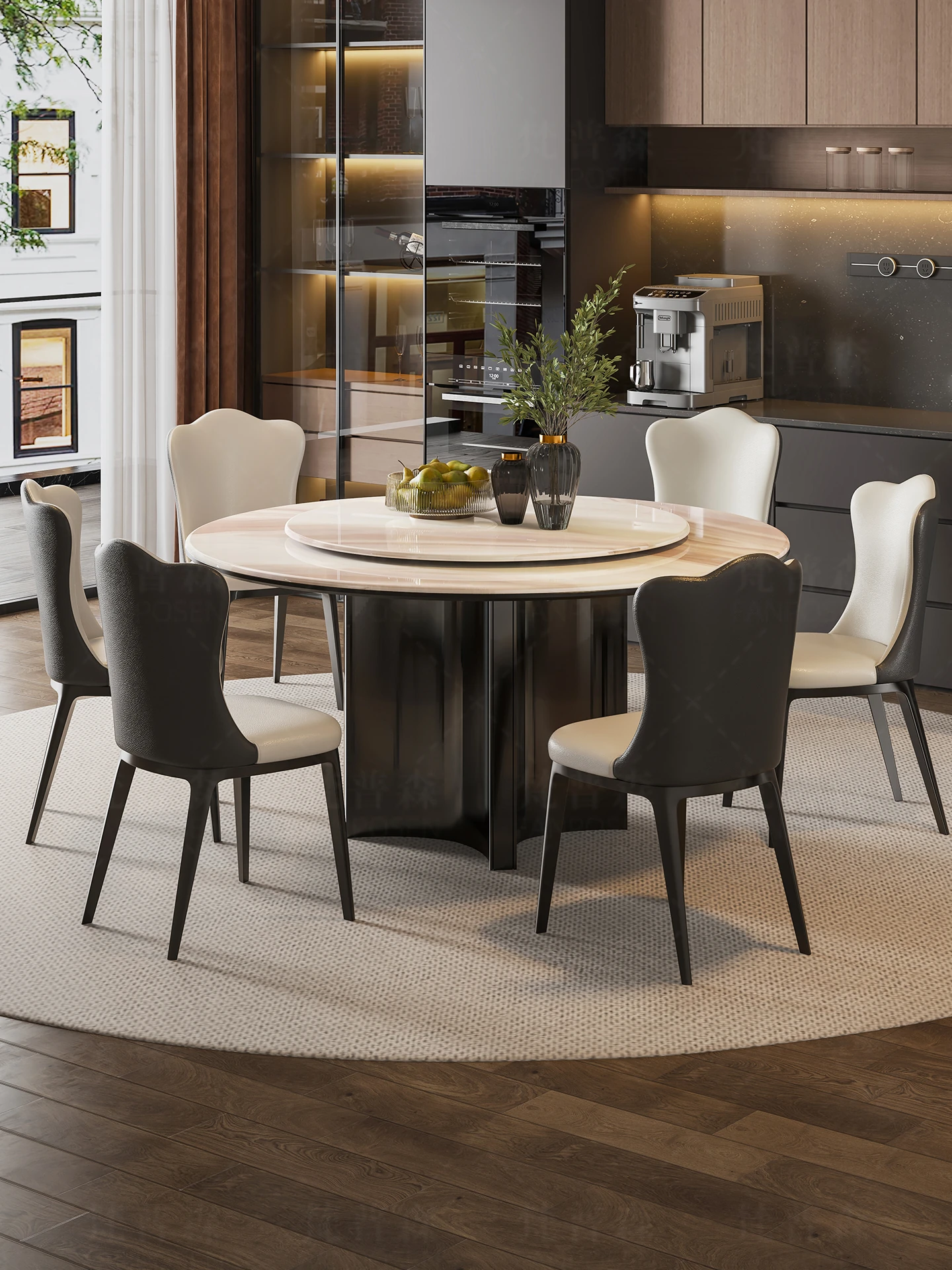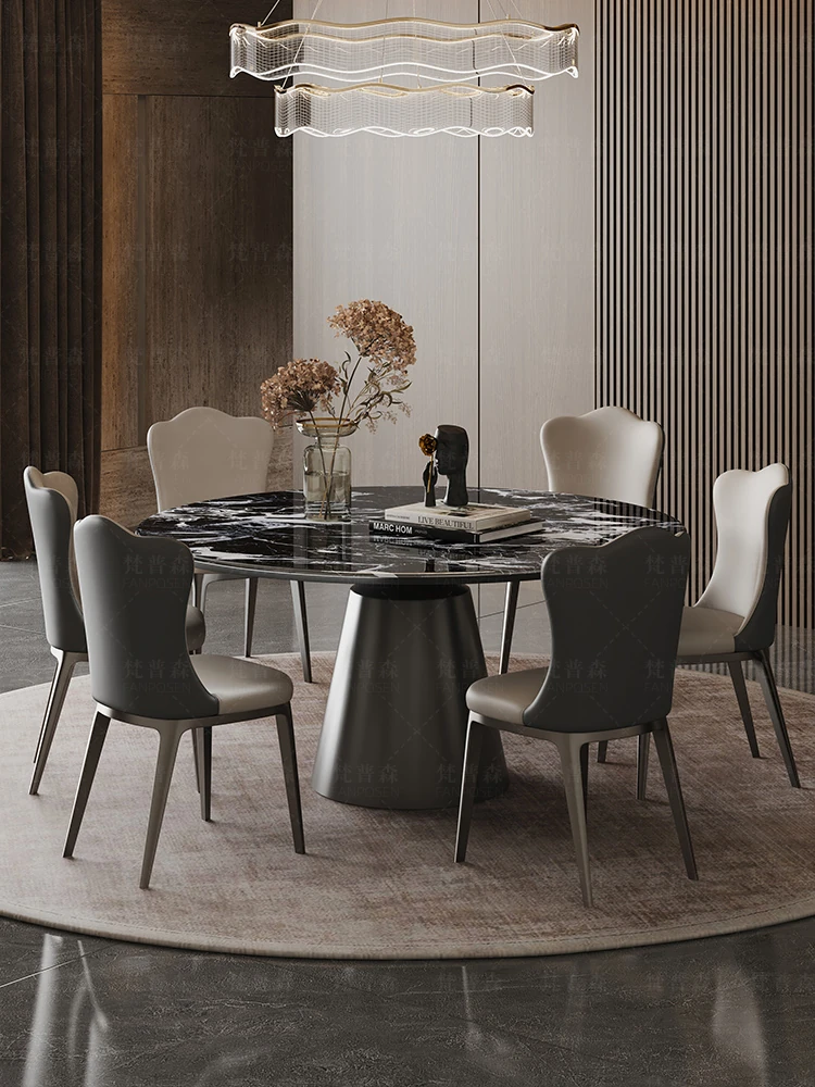輸入黒バラ天然豪華石材の高級感あふれる大理石ラウンドダイニングテーブル - イタリアンライトラグジュアリーの円形テーブルセットで特別な食事体験を!