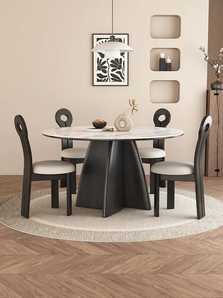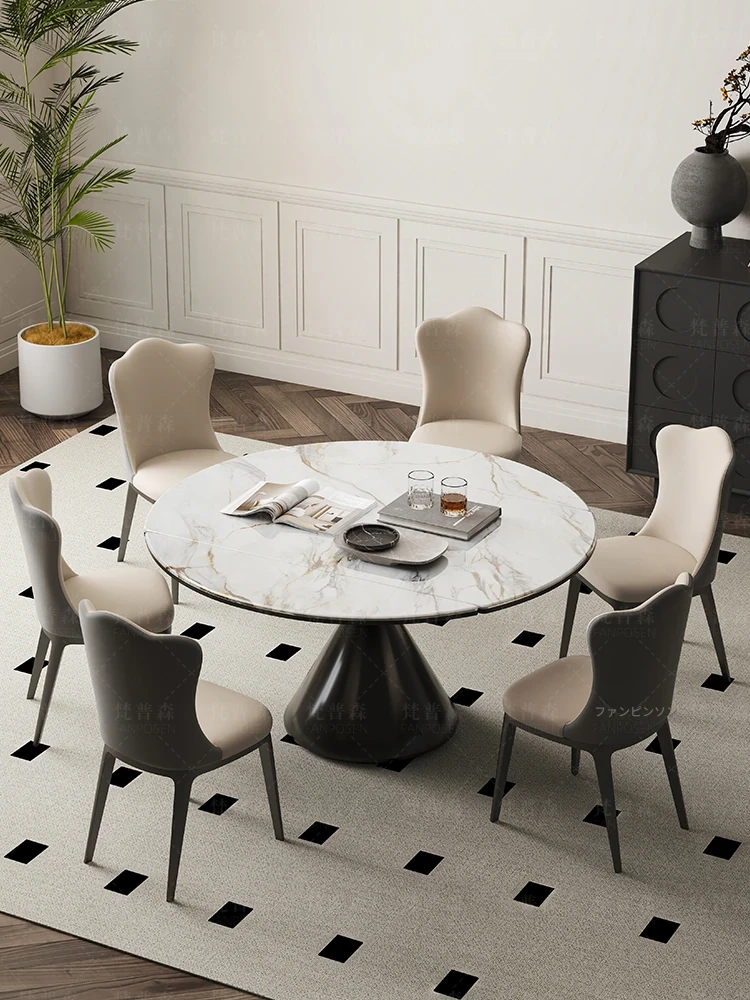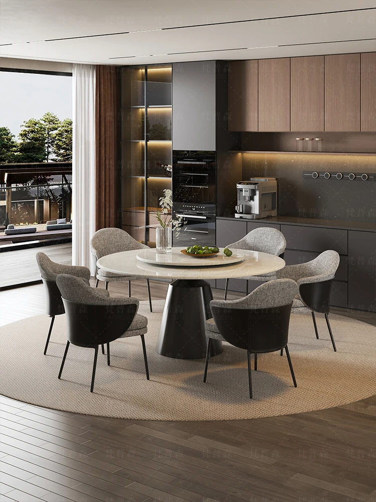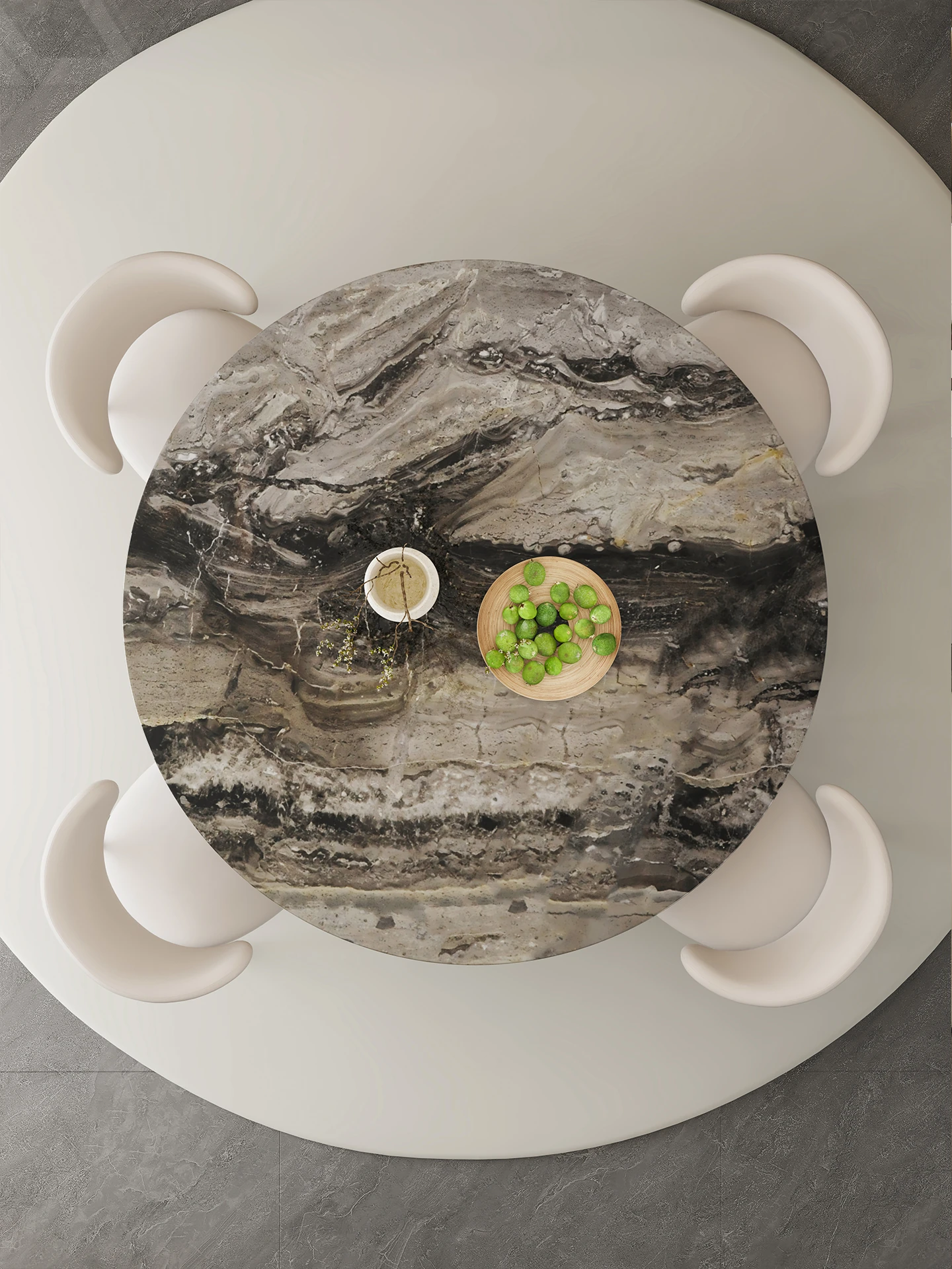 輸入黒バラ天然豪華石材の高級感あふれる大理石ラウンドダイニングテーブル - イタリアンライトラグジュアリーの円形テーブルセットで特別な食事体験を!