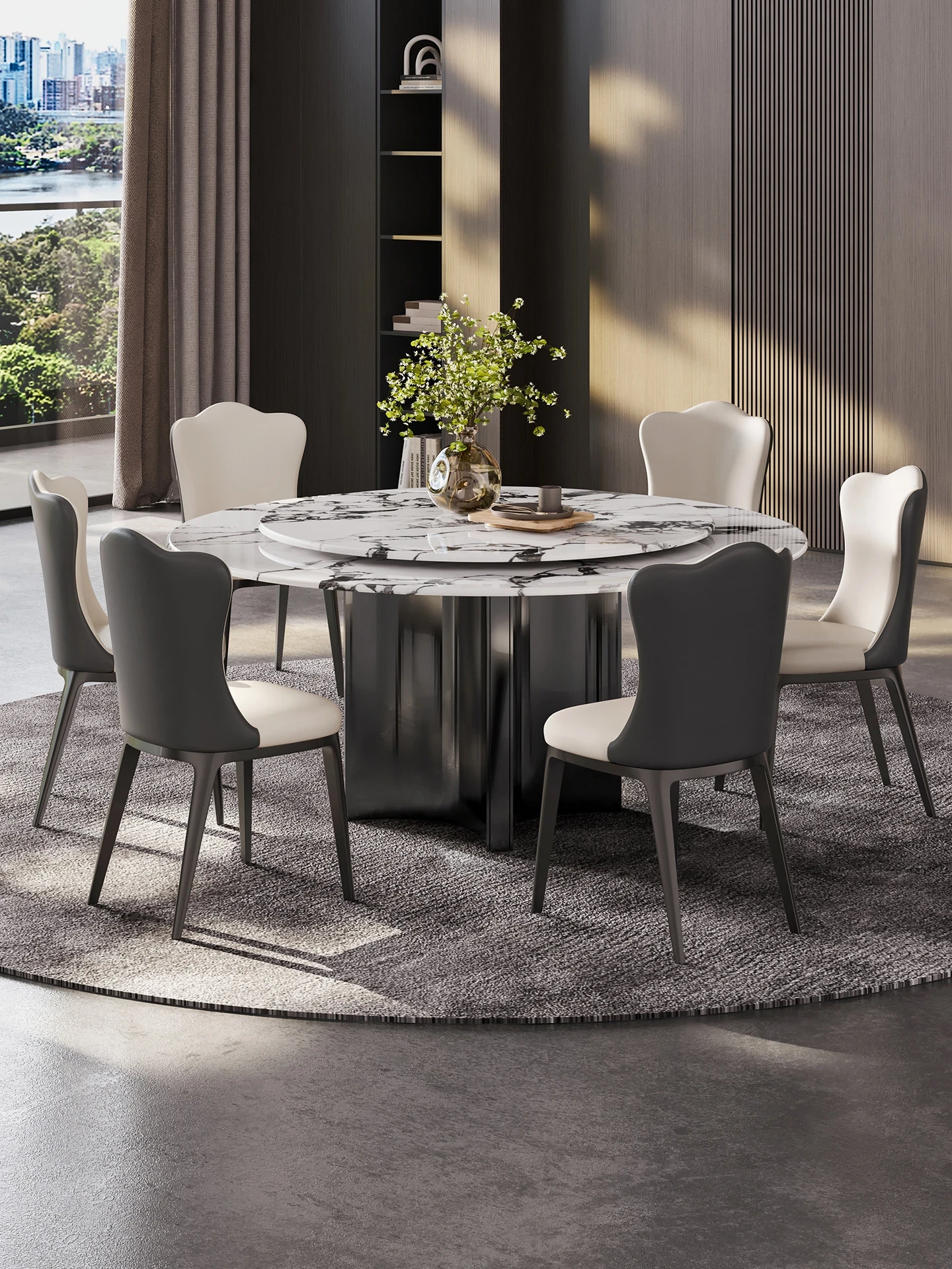 純天然輸入の香雪梅デザイン、ラグジュアリーな大理石円形ダイニングテーブルセット。回転プレート付きで、洗練された空間を演出します。高級感溢れるこのテーブルで、特別なひとときをお楽しみください。