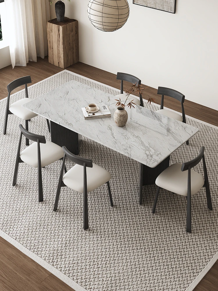 輸入品ジャズホワイト高級石無垢材ダイニングテーブル 中古風天然大理石使用の軽奢長テーブル 家庭用長方形ダイニングテーブル - 高級感溢れるデザインで、おしゃれな食卓を演出!