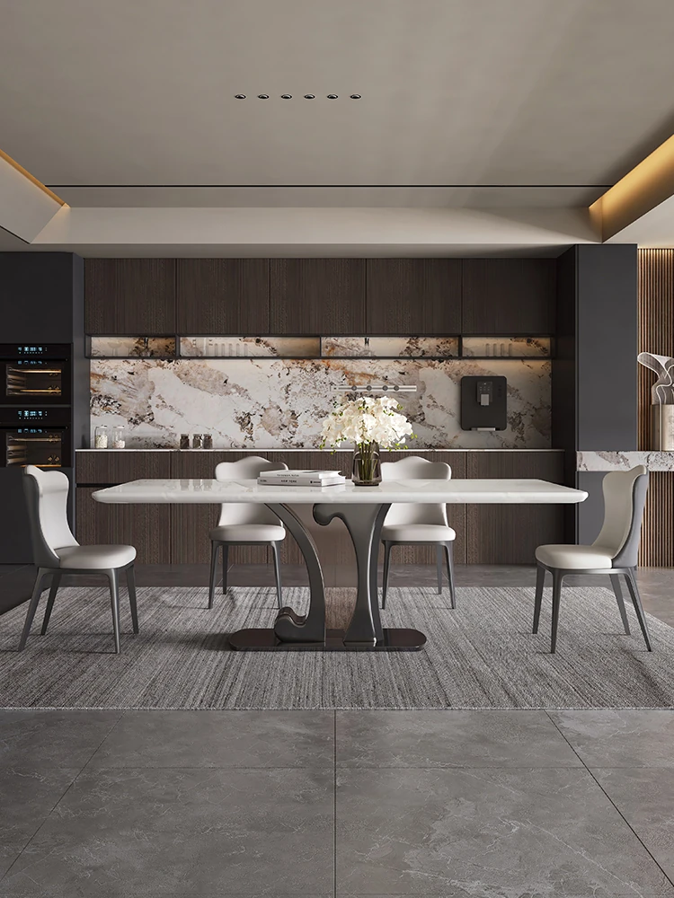 2025年新款!イタリアンラグジュアリー大理石ダイニングテーブル 雪山の飛狐デザイン モダンな高級別荘向けダイニングテーブル&チェアセットで、家族や友人との特別なひとときを演出します!